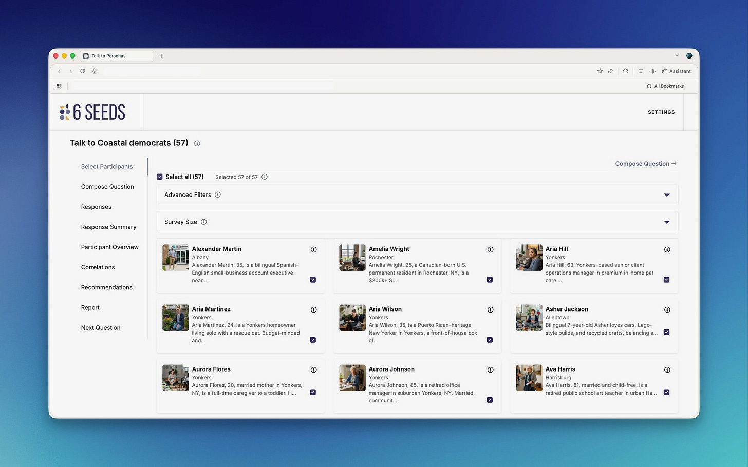 Each digital model is built on verified, real-world data anchored in national statistics, market databases, and client inputs to ensure population-level accuracy. 6 Seeds applies continuous machine-learning validation and maintains strict privacy safeguards, allowing each simulation to evolve as real-world data changes.